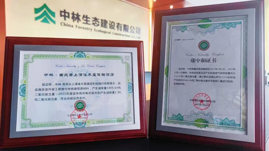 目前,公司及其子企业持有商量岗旅游度假区碳中和证书、中林南苑云上清溪木屋低碳酒店证书、高危险性体育项目经营许可证等证书;