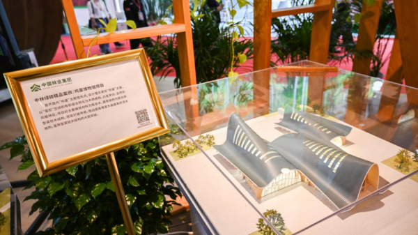 展会上,中林集团聚焦“科学扩绿 为国储材”“创新引领‘双碳’先行”“美丽中国 乡村振兴”“生态产品价值实现”“绿水青山就是金山银山”五大主题,集中展现了中林集团“落实森林‘四库’建设美丽中国”的丰硕成果,展厅面积近500平米,吸引了众多参观者和行业人士的关注。从杭州亚运会亚运村服务中心空降至展厅中心的木结构建筑“云桂”更是成为现场的“明星”展品,吸引了众多参观者驻足观看并拍照留念。