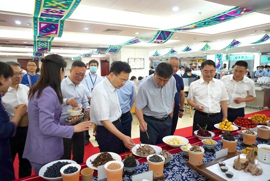 会见后,由中林商务服务公司协办的“‘景宁600’ 走进中林”主题活动在中林集团食堂举行。集团公司领导单忠立、张炳南、王迎财与干部职工共同品鉴“景宁600”农产品、金奖惠明茶、畲家十大碗等畲乡美食,感受畲族山歌和畲族非遗文化的独特魅力。