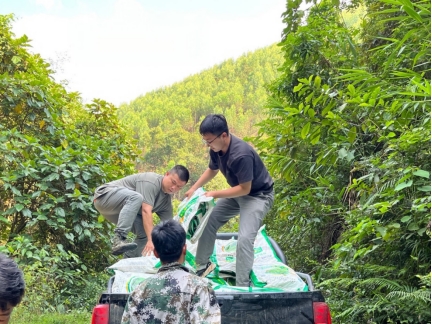 有一次,雇佣的民工临时退场,导致肥料无法搬运到存放点,堆在林地里的肥料无人清点。当时事业部仅有3名员工,获悉后,他们二话没说,起身前往林地清点肥料,3个小伙子顶着39°的高温一趟又一趟搬运,衣服湿了干、干了又湿, 2300袋肥料被搬到目的地,确保了公司物资安全,亮出了青春本色。