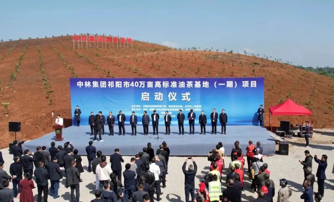 2023年4月26日上午中林集团祁阳市40万亩高标准油茶基地项目(一期)在湖南祁阳市唐家山油茶产业园正式启动!
