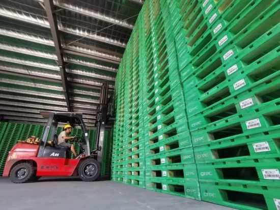 “与传统木托盘不同,我们的托盘通过植入芯片,有助于实现物资全流程智能管理。”该园区托盘生产负责人带着记者来到仓库,这里数万个托盘犹如大厦般整齐码放,每个托盘都被喷涂成绿色,托盘侧面用螺丝固定着一片白色塑料片,上面印有中林集团标志和条形码,这便是中林集团数字化木托盘智能芯片。该芯片采用射频识别技术,托盘只要进出仓库,就可实现非接触双向数据通信,极大提高仓库管理效率,提升搬运装车速度,降低物流运输成本。