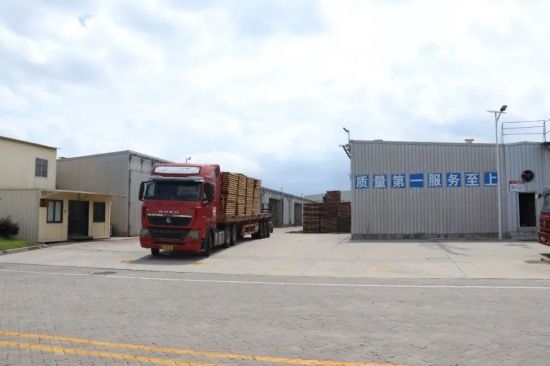 仲夏时节,秀屿港区莆头港,万方堆场,巨木高垒。一墙之隔,一期占地487亩的福建省国林木材产业园内,叉车往来繁忙,将一摞摞木托盘整齐装车,发往国内各地。