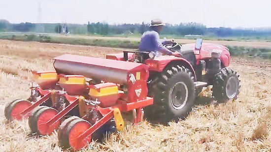 烈日当空,播种机开足马力穿梭于田间地头,加紧播种夏玉米。基地针对收麦后的土地,采用免耕播种的方式,直接在原来的垄上错茬播种,一次完成播种、施肥、镇压等工序,既节省成本,更蓄水保墒,出苗齐,抗倒伏。同时,基地利用高标准农田灌溉系统,做到播种一块、灌溉一块,确保“苗齐、苗匀、苗壮”,为秋粮稳产丰产打下坚实基础。