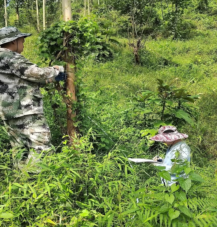 中林肇庆公司员工国庆期间开展实地测量国储林林木工作。