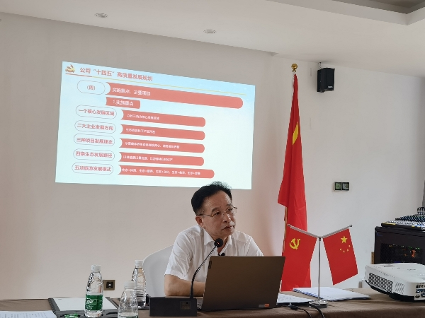 高云宸以《深入学习领会习近平生态文明思想,坚持生态优先,绿色发展》为题,从我国为什么要大力推进生态文明建设、我国生态文明建设思想的形成脉络、习近平生态文明思想的三大基本理念和习近平生态文明思想的六项原则四个方面,结合公司“十四五”高质量发展规划,以丰富的内容、鲜明的观点、生动的故事,系统阐述了学习领会习近平关于生态文明建设思想、绿色发展理念等重要论述的重要性,并为公司高质量发展指明了方向、提出了要求。他指出,下一步公司将以“十四五”规划为指引,围绕主责主业,持续进行生态旅游项目开发建设,着力打造商量岗生态旅游精品旗舰,总结项目开发经验,强化中林生态旅游品牌及核心竞争力,为集团公司高质量发展贡献力量。